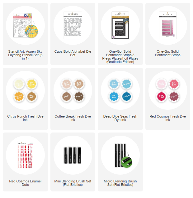 This fall card is a lovely mix of stenciling, layering, and subtle texture. The Aspen Sky background creates a warm seasonal feel, while the dimensional sentiment adds interest and focus.