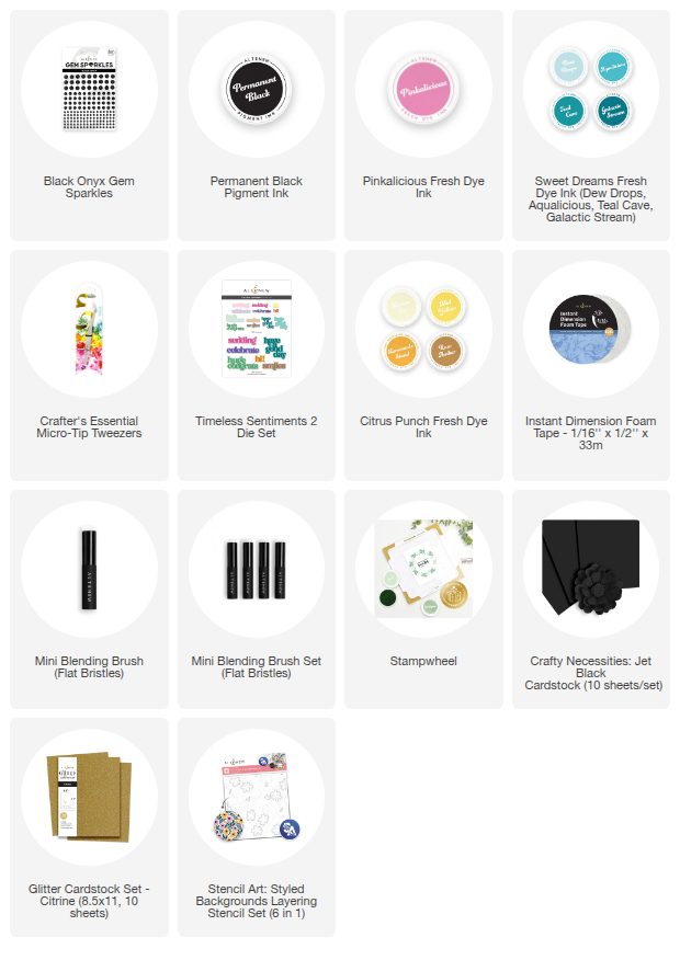 Mixed Media Finishes: Enhance visual interest with Citrine Glitter Cardstock accents and Black Onyx Gem Sparkles.