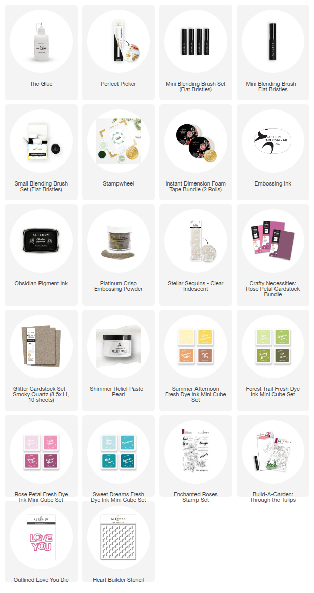 To finish, I stamped a sentiment from Enchanted Roses Stamp Set onto white card using Obsidian Pigment Ink. I trimmed it down and added it onto my tulips using Instant Dimension Foam Tape. To add a bit of sparkle, I added some Clear Iridescent Stellar Sequins around the tulips using the Perfect Picker.