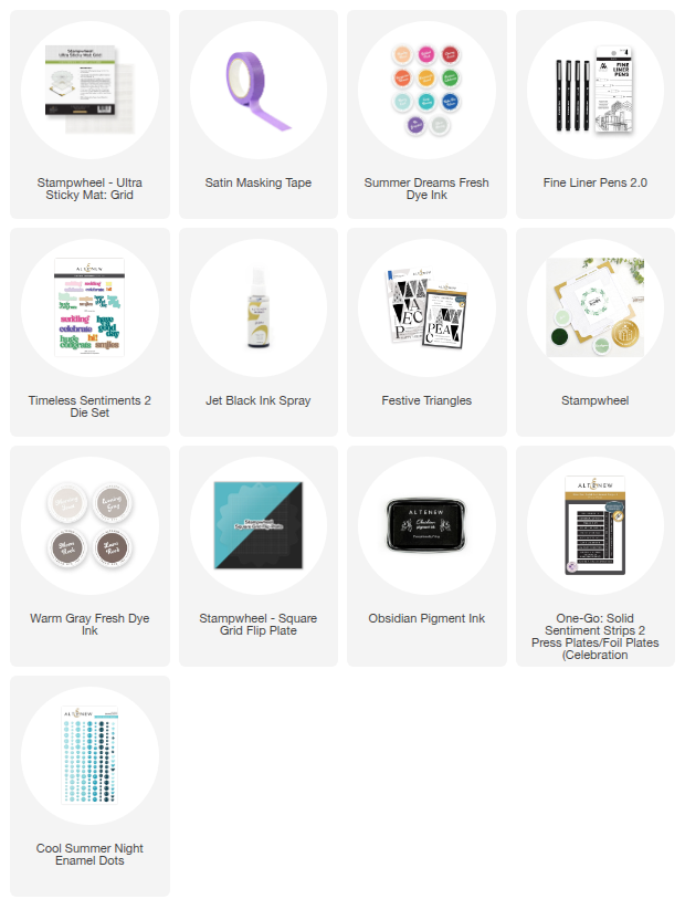 Summer Dreams Fresh Dye Ink, Timeless Sentiments 2 Die Set, Jet Black Ink Spray, Fine Liner Pens 2.0
