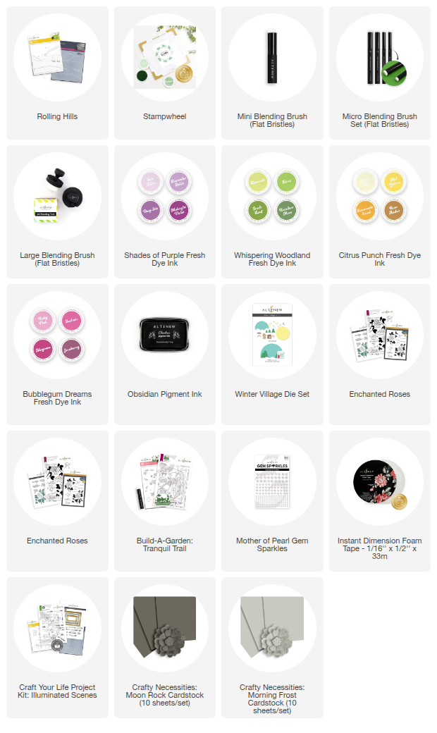 - Fresh Dye inks: Shades of Purple, Whispering Woodland, Baby Pink & Mid Yellow.