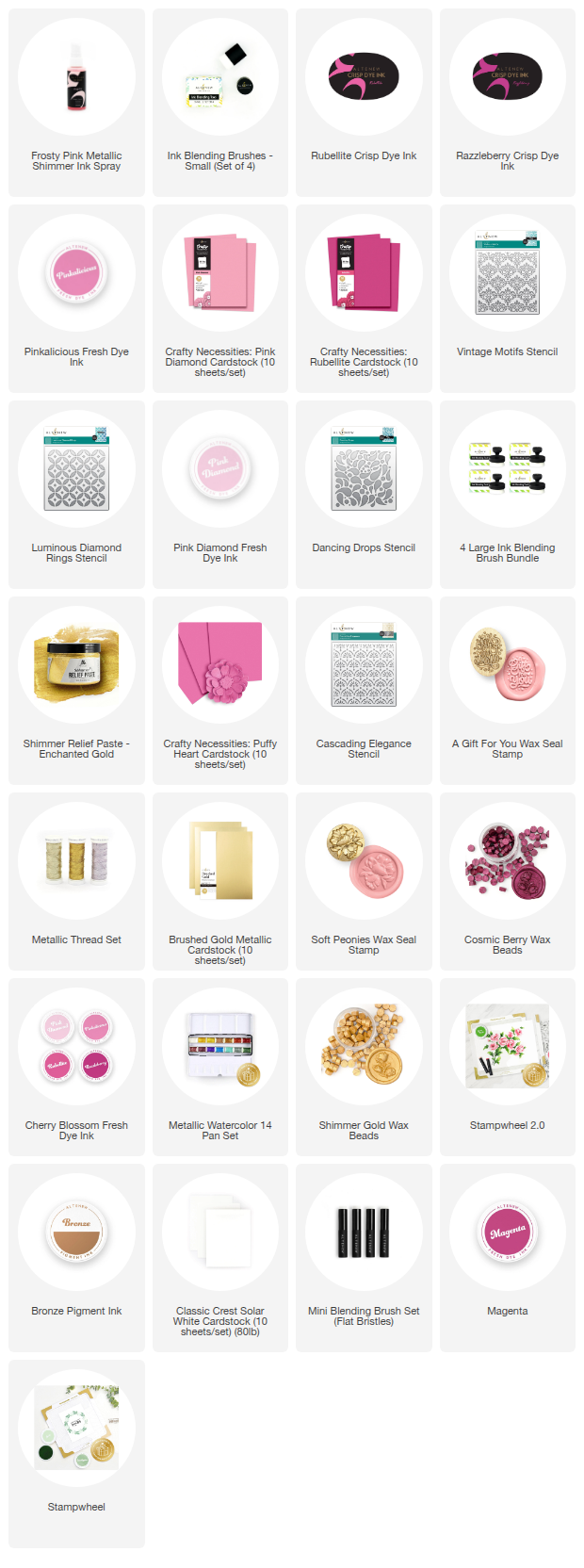 The great thing about the range of products from Altenew is that there are not just inks. We have alcohol markers and inks, colored card stock, wax beads, sparkle and embellishments galore. We are going to use quite a few of these today, for some pinkalicious cards for all sorts of occasions. The layout and design of these can so easily be adapted for different occasions and the colour is super easy to swap out too, if for instance whoever you are making a card for loves yellow or purple.