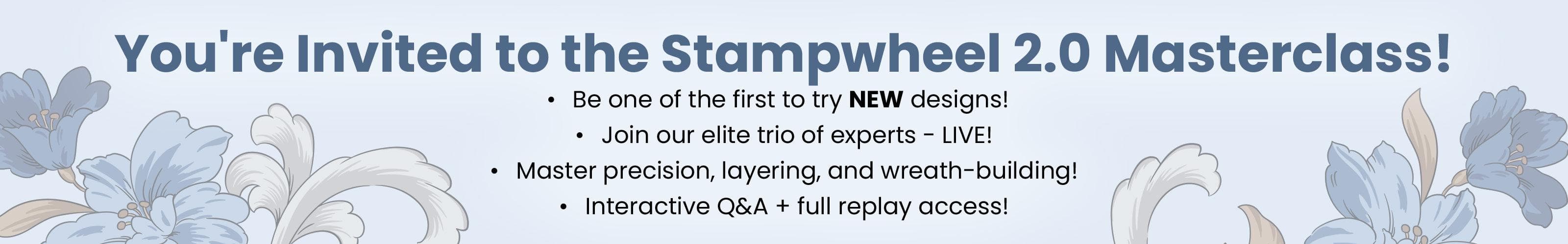 In this full-day LIVE stamping class, you’ll learn how to unlock advanced techniques like layered stamping, wreath building, and flawless backgrounds—all with the effortless precision of the Stampwheel 2.0.