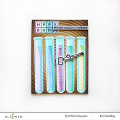 The Chemistry Vases Layering Stencil Set coordinates with the Chemistry Vases Stamp & Die Sets, and includes 1 stencil. This stencil makes it a breeze to "fill" the test tubes and flask from the coordinating stamp set. There is also a second layer for the test tube clamp that you can ink through to give it a more realistic look!