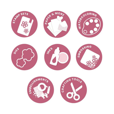 If you like surprises, you will love the thrill of getting this crafting package in the mail. Think: delightful stamps, dies, crafting tools, and more surprise items that you will be sure to enjoy playing with in your craft room again and again.