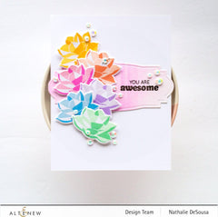 Enjoy this unique stamp set featuring a two-layer lotus flower with the look of glass or crystal. Stamp multiple times for a fun background or only a couple for a lovely focal point. We have finished off the set with an awesome sentiment that you will love to use again and again!