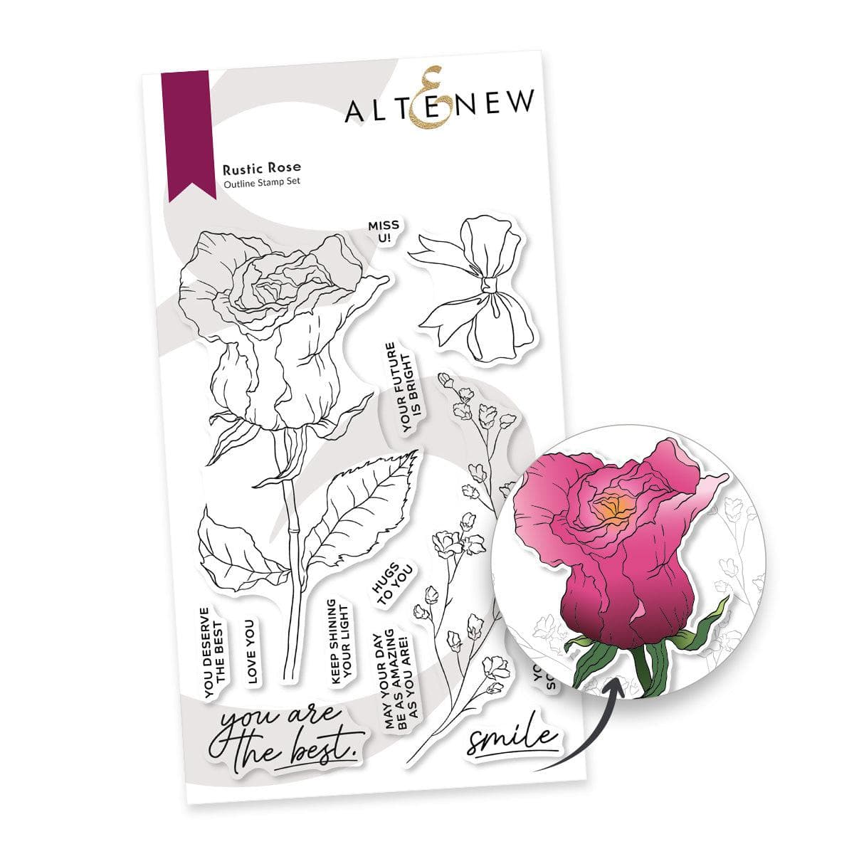 The exquisite 4" x 6" Rustic Rose Stamp Set showcases a vintage-style rustic rose, a delicate bow, a charming branch of baby's breath & 10 versatile loving sentiments, allowing you to personalize and complete your handmade projects. With its timeless design, these stamps are perfect for adding a touch of elegance to your paper crafts.