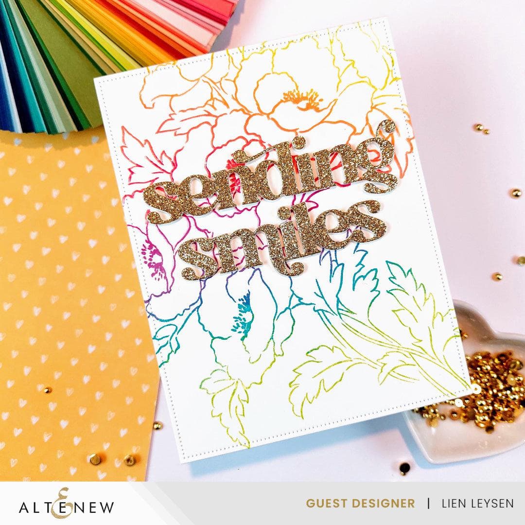 Die Dimensions: Sending Shadow: 3.8" x 1.2" ▪ Sending Outline: 3.7" x 1.0" ▪ Celebrate Shadow: 4.3" x 0.9" ▪ Celebrate Outline: 4.2" x 0.8" ▪ Huge Congrats Shadow: 4.1" x 1.9" ▪ Huge Congrats Outline: 1.9" x 1.8" ▪ Smiles Shadow: 3.1" x 1.1" ▪ Smiles Outline: 3.0" x 1.0" ▪ Hi! Shadow: 1.3" x 0.9" ▪ Hi! Outline: 1.2" x 0.8" ▪ Have a good day Shadow: 3.0" x 2.9" ▪ Have a good day Outline: 2.8" x 2.8"