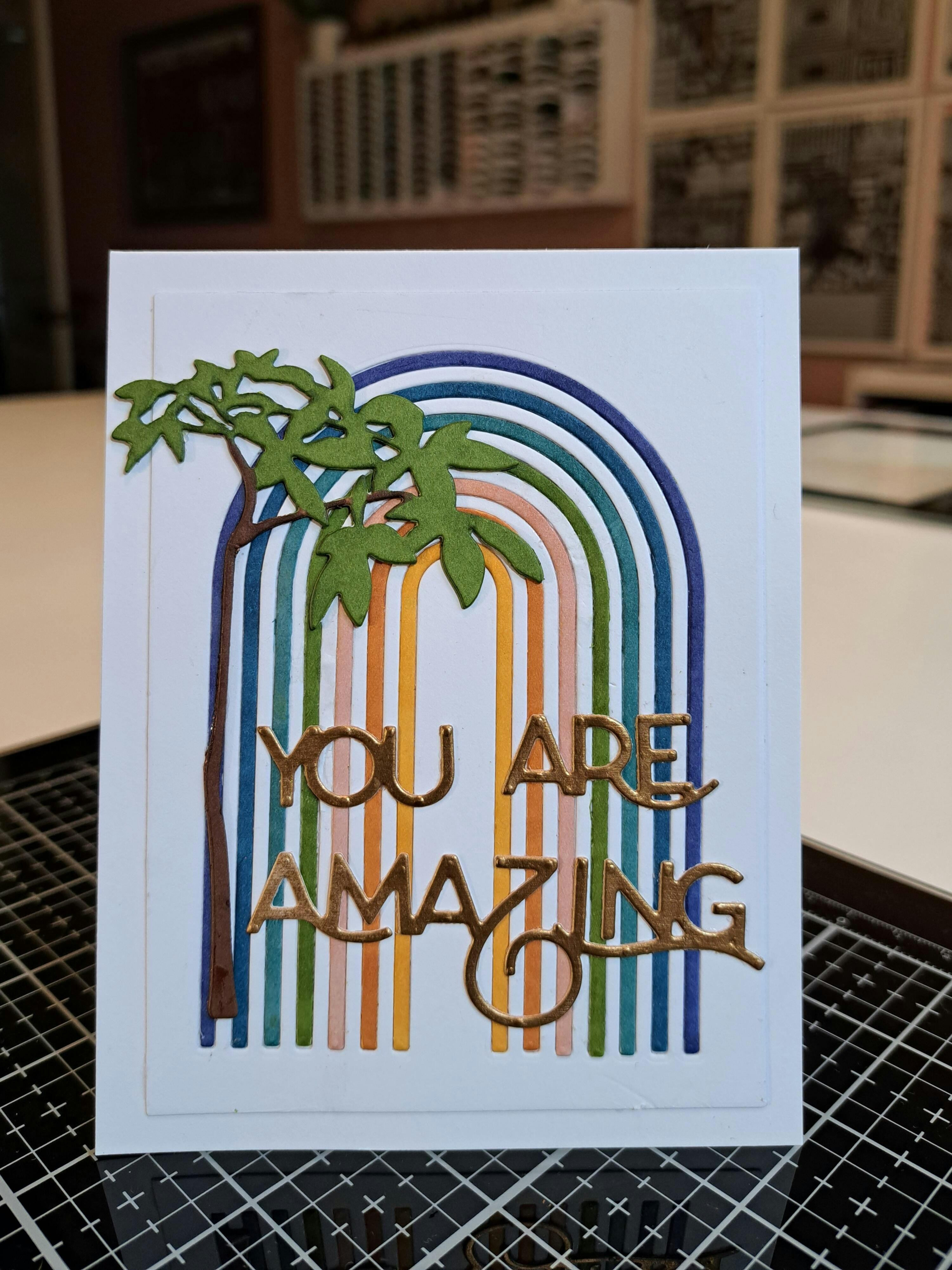 I have to laugh at myself sometimes. I bought this die set only because it was on sale. It was nice, I thought, but how much use would I get out of it? Well, let's see: rainbows, waves, Mid-Century Modern, Asian, trees, foliage, shakers, windows, and umm... arches. (laughter) It's the bomb! I use it all the time and, were circumstances different, would've counted it a bargain at full price. Thanks, Altenew, for adding so much to my creative stash!