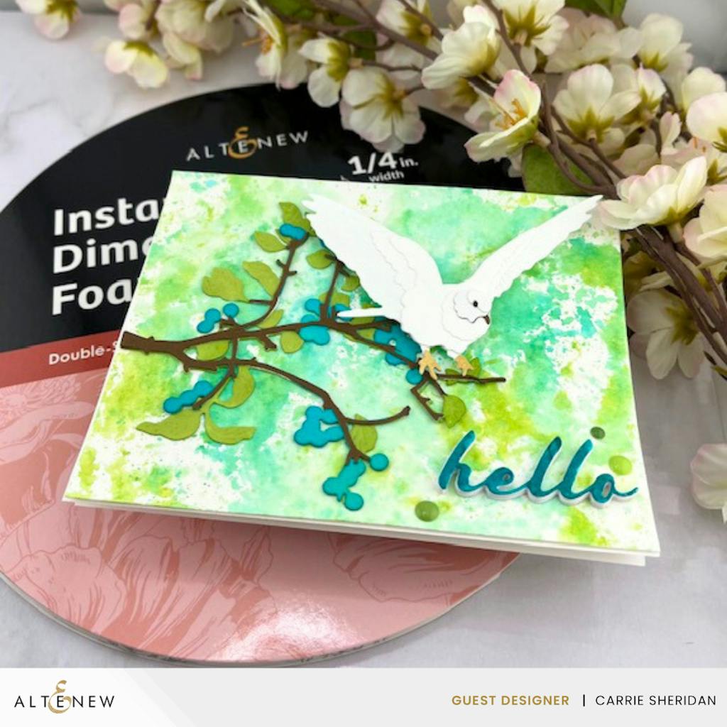 This is such a fantastic layering die set! The layers can be used together or separately with a little coloring. It can be a branch to perch one of Altenew's lovely birds on, it can be used to add to backgrounds, etc. It's easy to layer together and the leaves and berries can be any color! So fun!