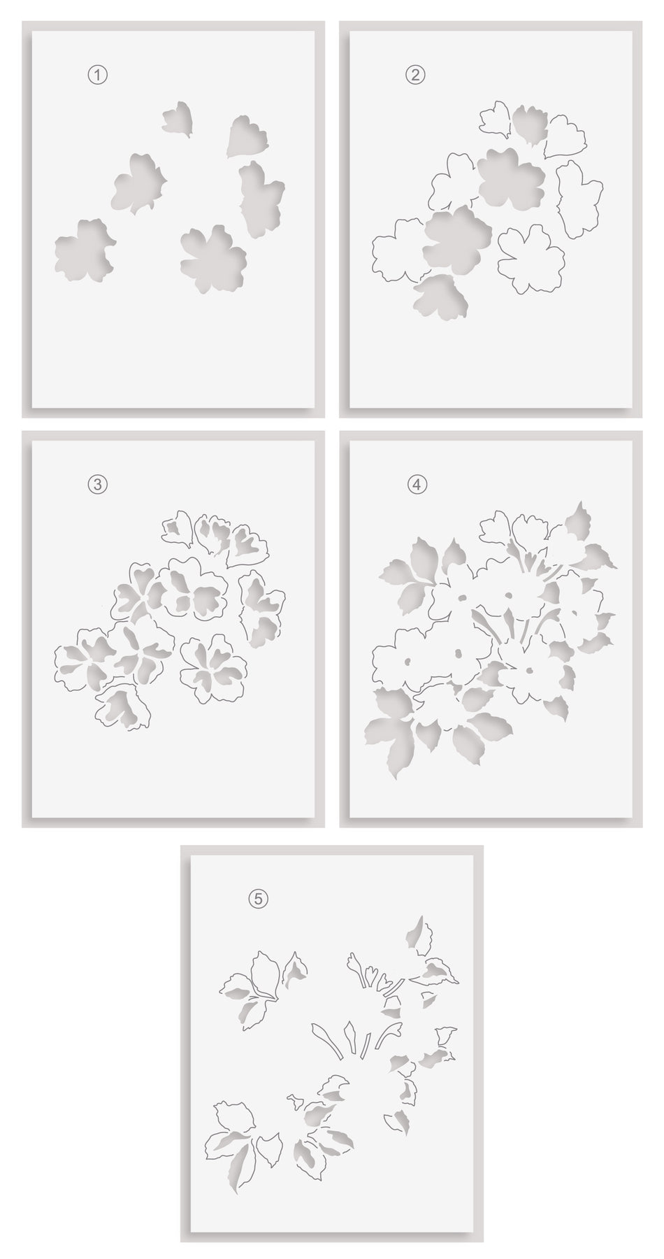 • One 4.5" x 6" layering stencil set with five stencils that coordinate with the stamp set