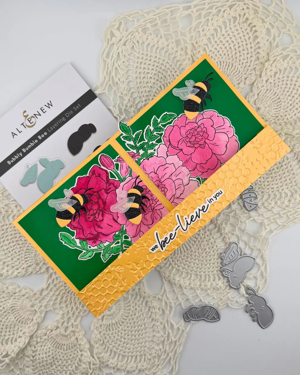 I love having the coordinating dies for stamped images and sentiments, and these dies are a great addition to the Honeycomb Haven project kit!
