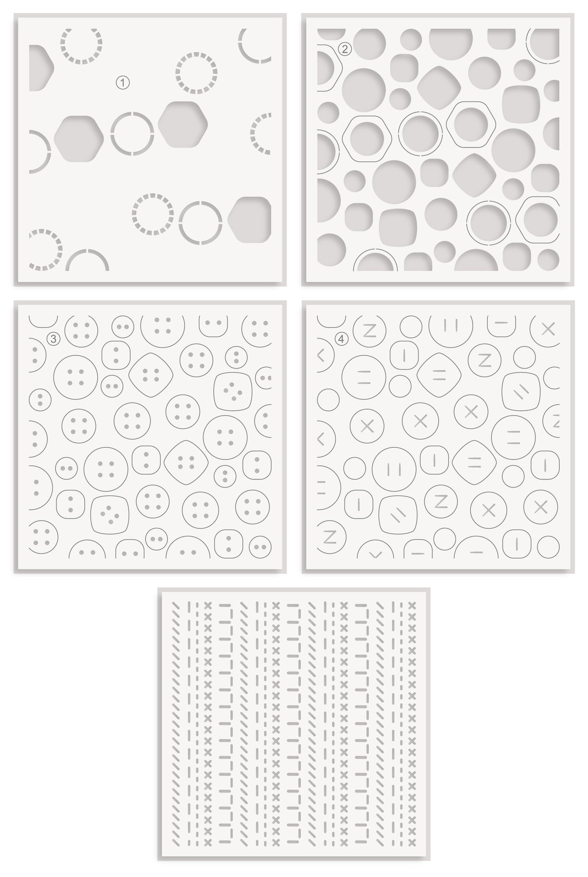 • One simple coloring stencil set containing 5 stencils