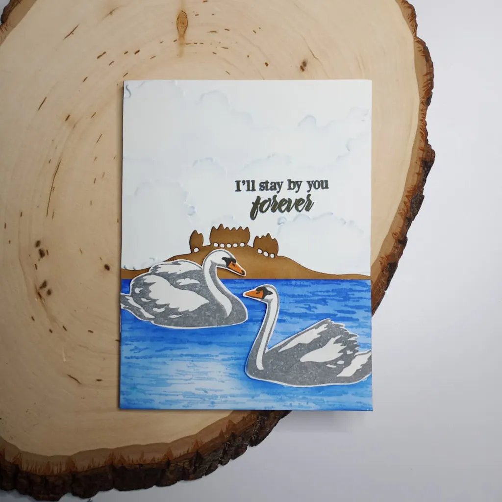 These swans are so pretty and the layers are easy to line up. The "water" stamp is great for building a scene for the swans too.