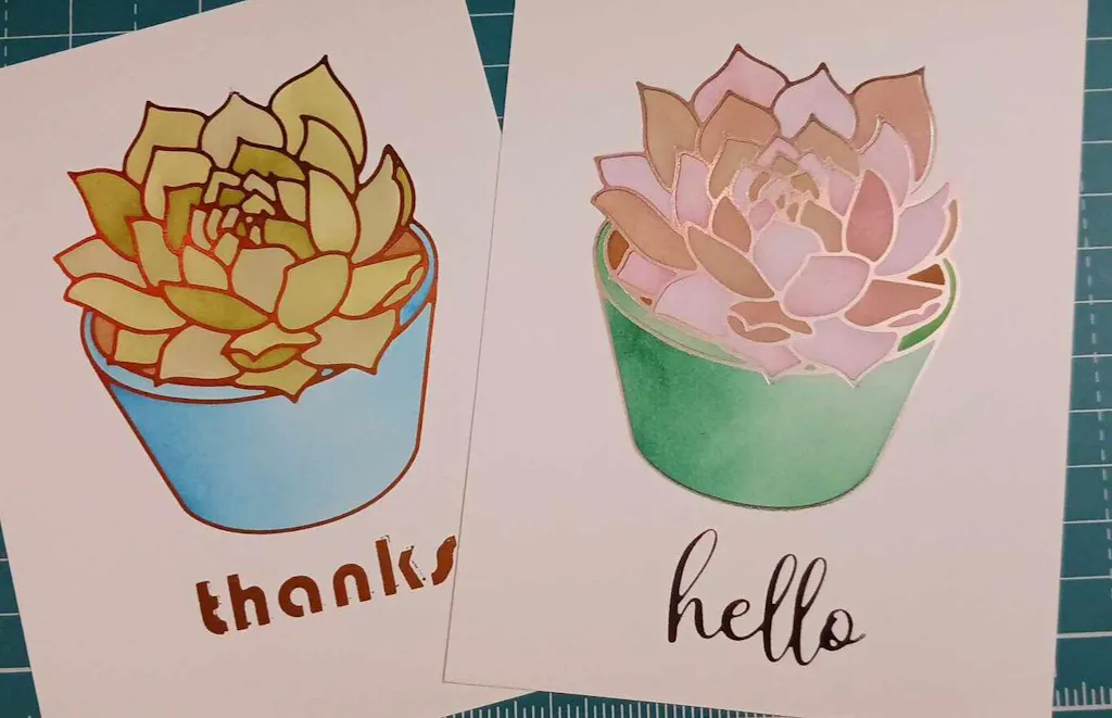The succulent looks amazing even without the use of the coordinating hot foil plate. Simply use the etched guides to align each of the stencils for a no-line look.