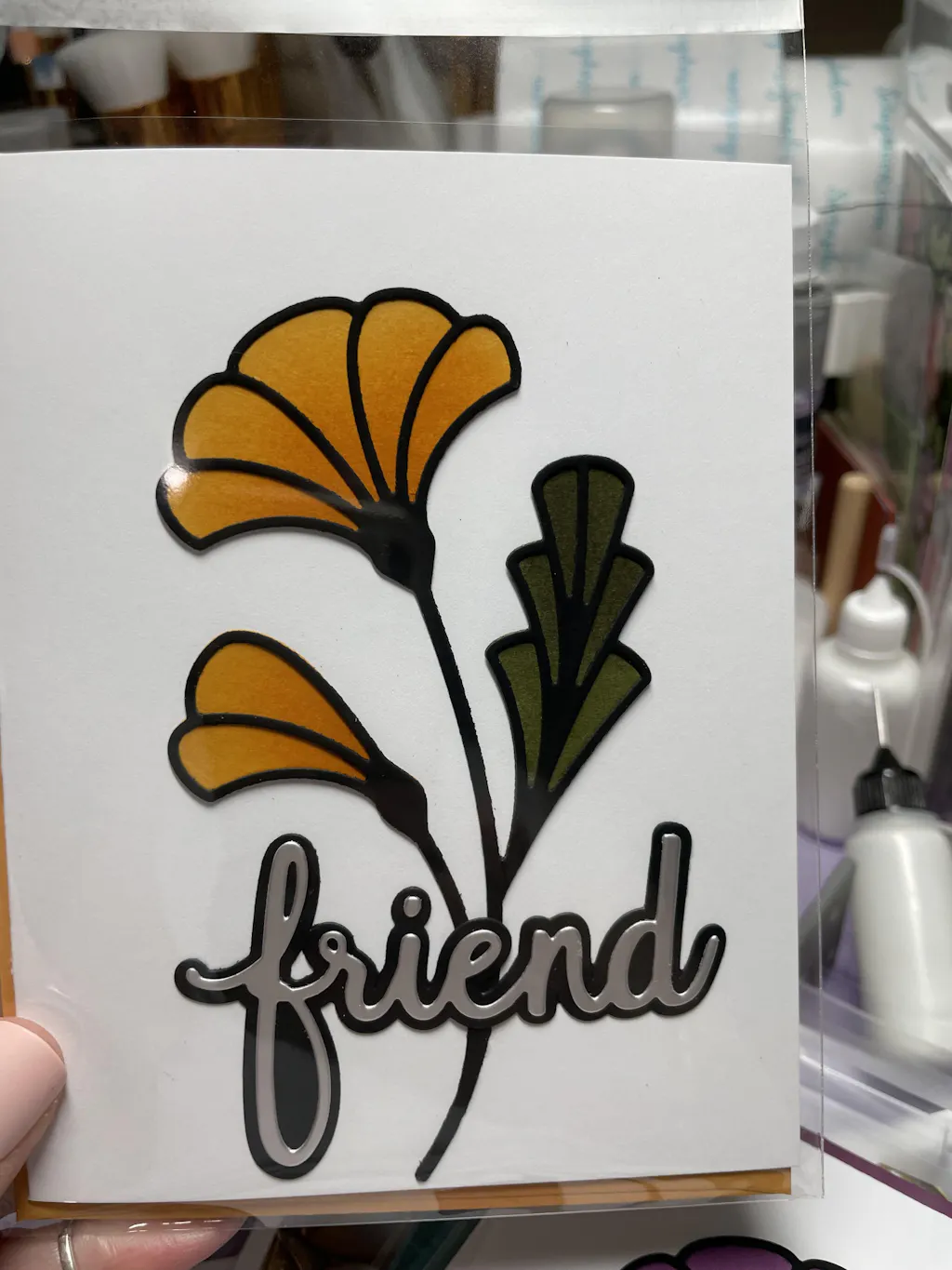 So many possibilities with this die set. Looks beautiful on an embossed card front… or on top of blended colors! Love using the die with metallic paper.