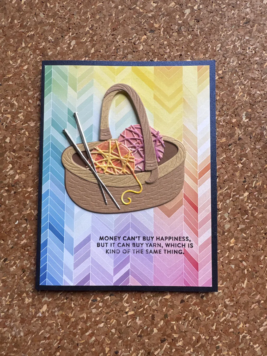 With the many layered floral cards I create, this one is the perfect size for everything from flowers to fruit, and the coordinating balls of yarn which I also had to have. WELL DONE!