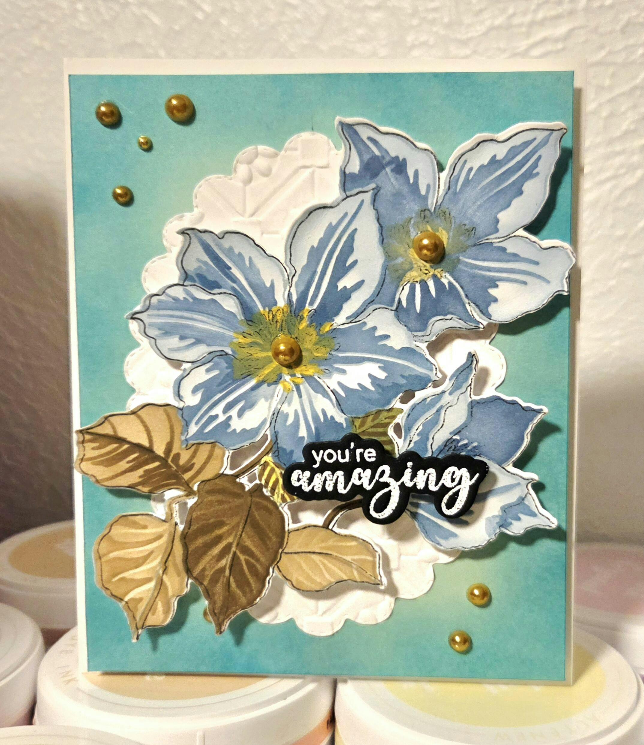 The simple coloring and layering stencil set in the kit does double duty! Add color and detail to the images from the Grand Carnations Stamp Set easily with your favorite colors of ink. Step up the look by inking through with embossing ink, then add a bit of powder and heat set!