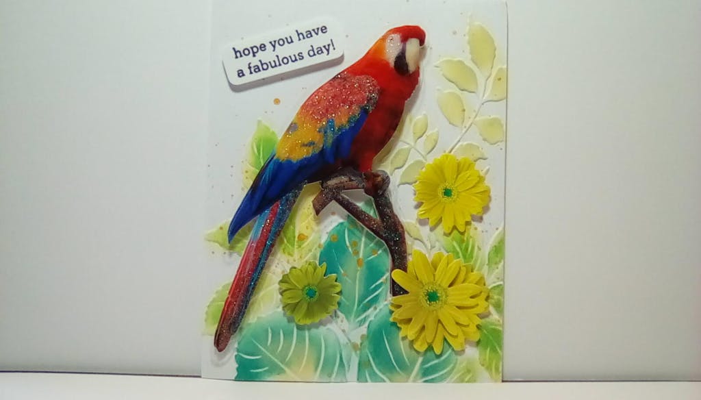 I adore this set. The embossing folder has been an absolute favorite of mine. I enjoy these sets and have purchased a few because you can use the elements separately with other items you have. I used the embossing folder with dollar tree stickers for the parrot card and it turned out great.