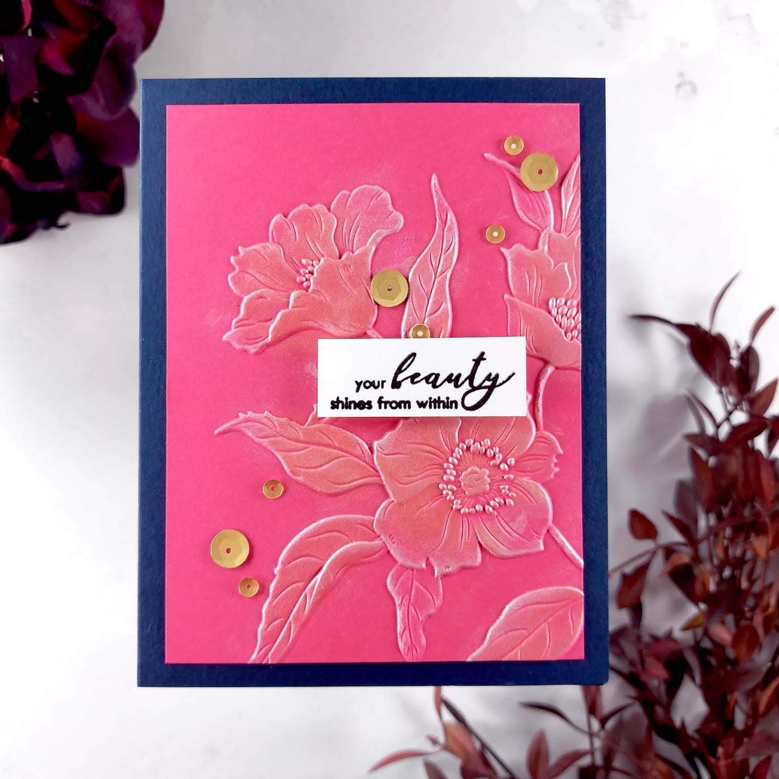 The flowers are beautiful and have so much detail, they almost look hand-drawn! I like to emboss the flowers first and then paint them in watercolours!
