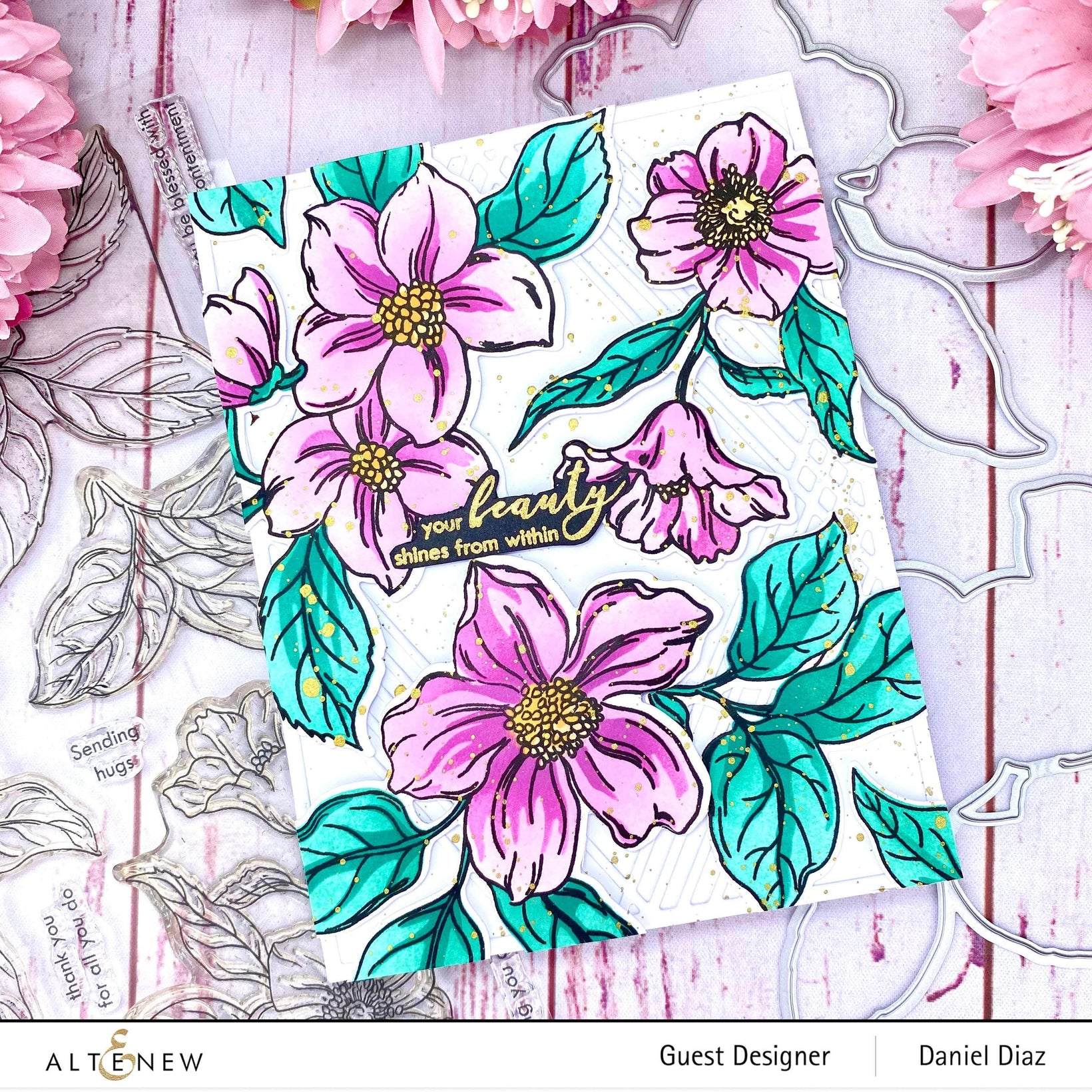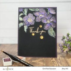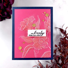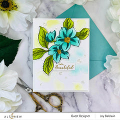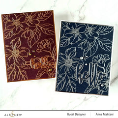 I received my order two days ago and when I opened the package, I was in complete awe! This set is so beautiful. The stamps create such clean crisp images.. Also, it's so easy to use the coordinating stencil set to create flowers in endless color combinations. The coordinating dies line up perfectly so that the images cut just right. I almost always have difficulty lining up layering stamps/stencils and dies. Thankfully, these are like a miracle for someone like me. The embossing folder is like frosting on the cake. It's such a perfect companion piece. Bravo, Altenew for putting together the perfect package.