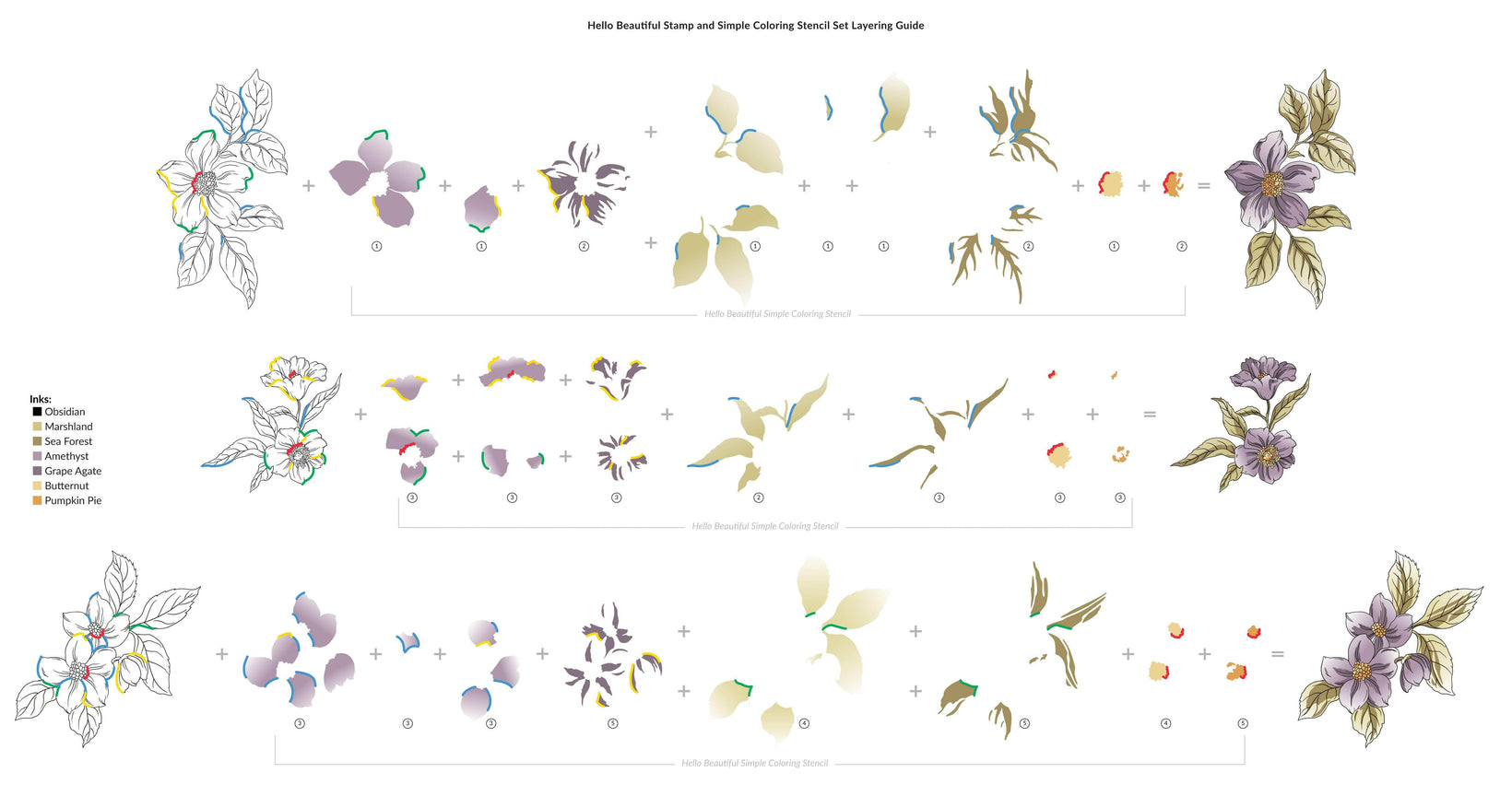 Download: Hello Beautiful Stamp and Simple Coloring Stencil Set (5 in 1) Layering Guide