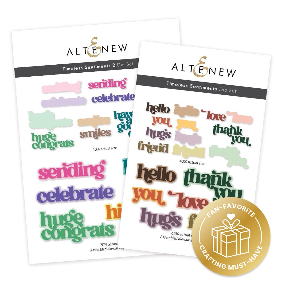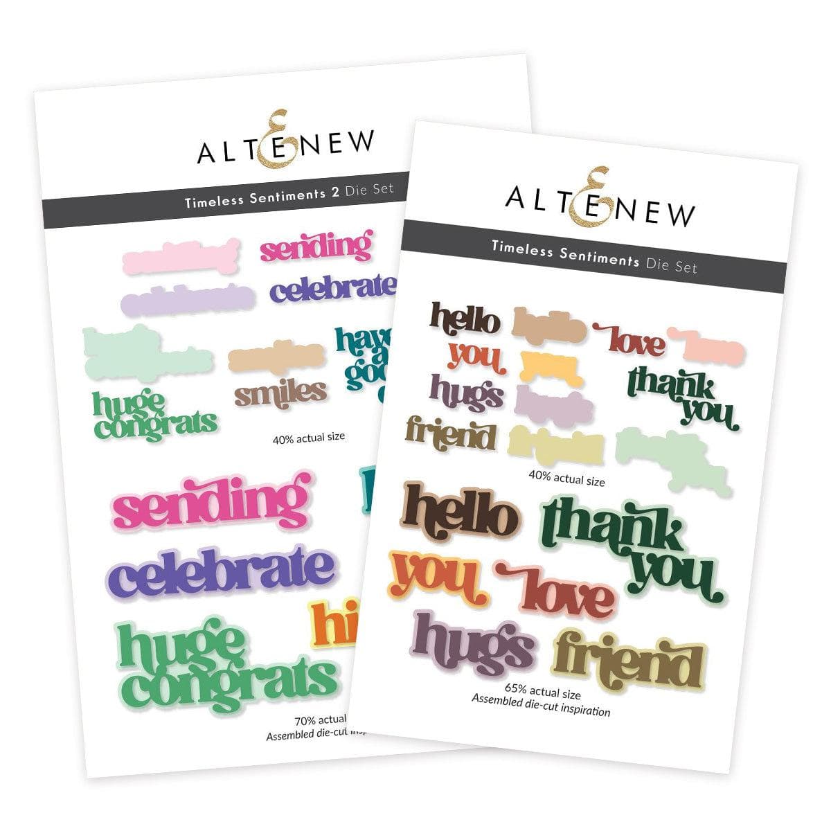 The versatile Timeless Sentiments 2 Die Set features classic sentiments perfectly suited for a variety of occasions. Its sophisticated serif font style harmonizes seamlessly with any design, be it floral, patterned, or abstract! There are 12 dies in this set; six outline dies and six shadow dies.