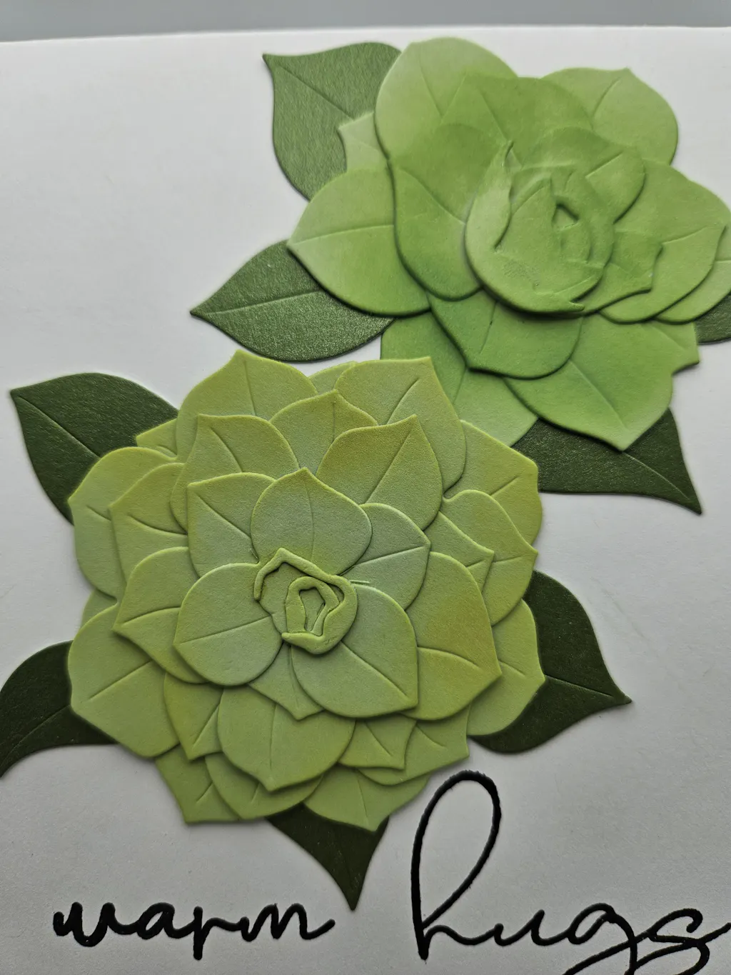Die Dimensions: Front-Facing Camellia: 2.5" x 2.3" ▪ Side-Facing Camellia: 2" x 2.1" ▪ hello: 1.6" x 1.7" ▪ hello shadow: 1.7" x 1.8" ▪ thanks: 2.1" x 0.7" ▪ thanks shadow: 2.2" x 0.8"