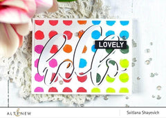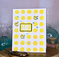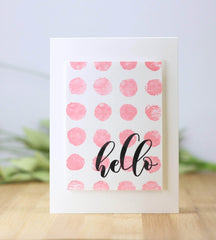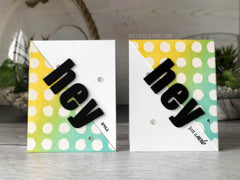Watercolor continues to be a strong trend in the design world and this stamp set will make it a breeze to create the look of watercolor dots on your next paper crafting project! We have included a few doodled images that you can stamp over each of the dots or you can use them as accents on their own. Sentiments in a fun, modern font complete the set!