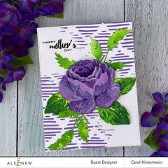 Place the stencil over the project area and secure it with washi tape, painter's tape, or any other repositionable adhesive. Add patterns to your project by blending inks, spraying mists, applying embossing paste, or adding glitter. Gently pull the stencil off from the project area to see the result.