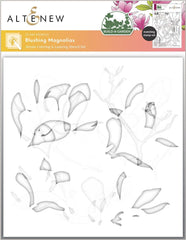 The simple coloring stencil set allows you to effortlessly add color to the tulip magnolia flowers and leaves. Simply align each stencil with the outline image and use a blending brush to blend in your favorite ink colors. There are two stencils in this set. Use the add-on coordinating die to add dimension.