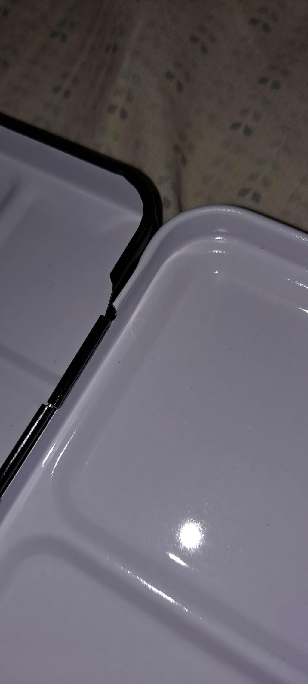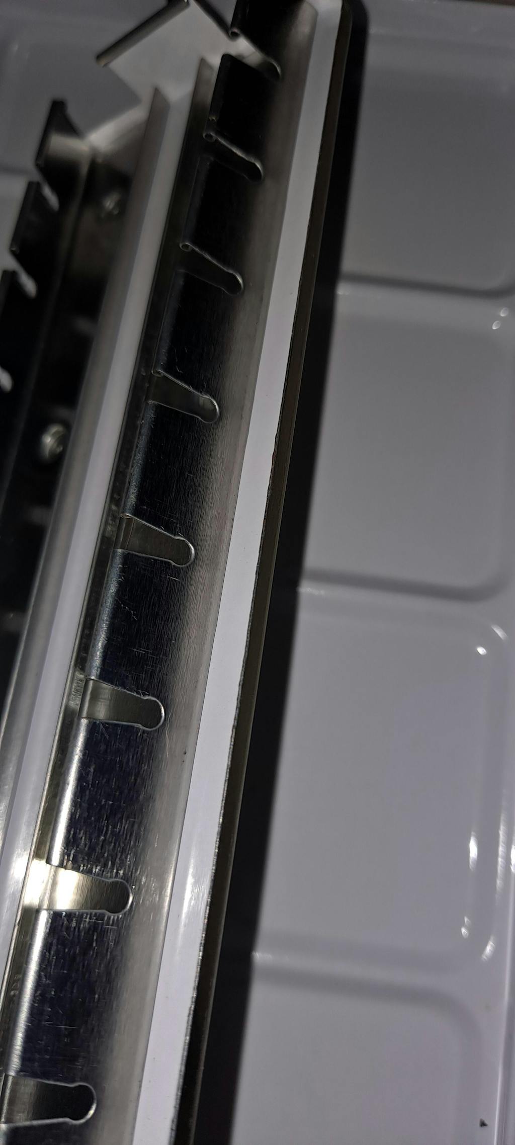 There are a few sharp spots that I will run a sanding sponge over later. Right by the hinges, the open tab on the drop paint wells, and the edges of the pan tray.