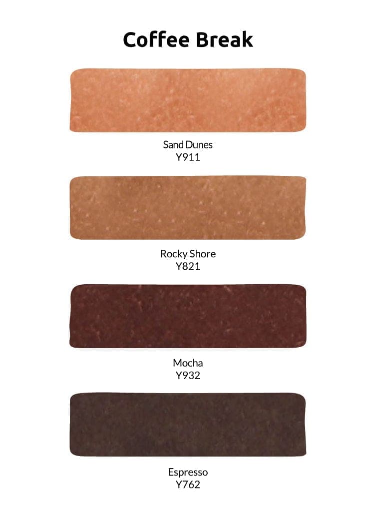 This bundle contains all four Alcohol Inks from the Coffee Break color family, Sand Dunes, Rocky Shore, Mocha, and Espresso, at a specially discounted price.
