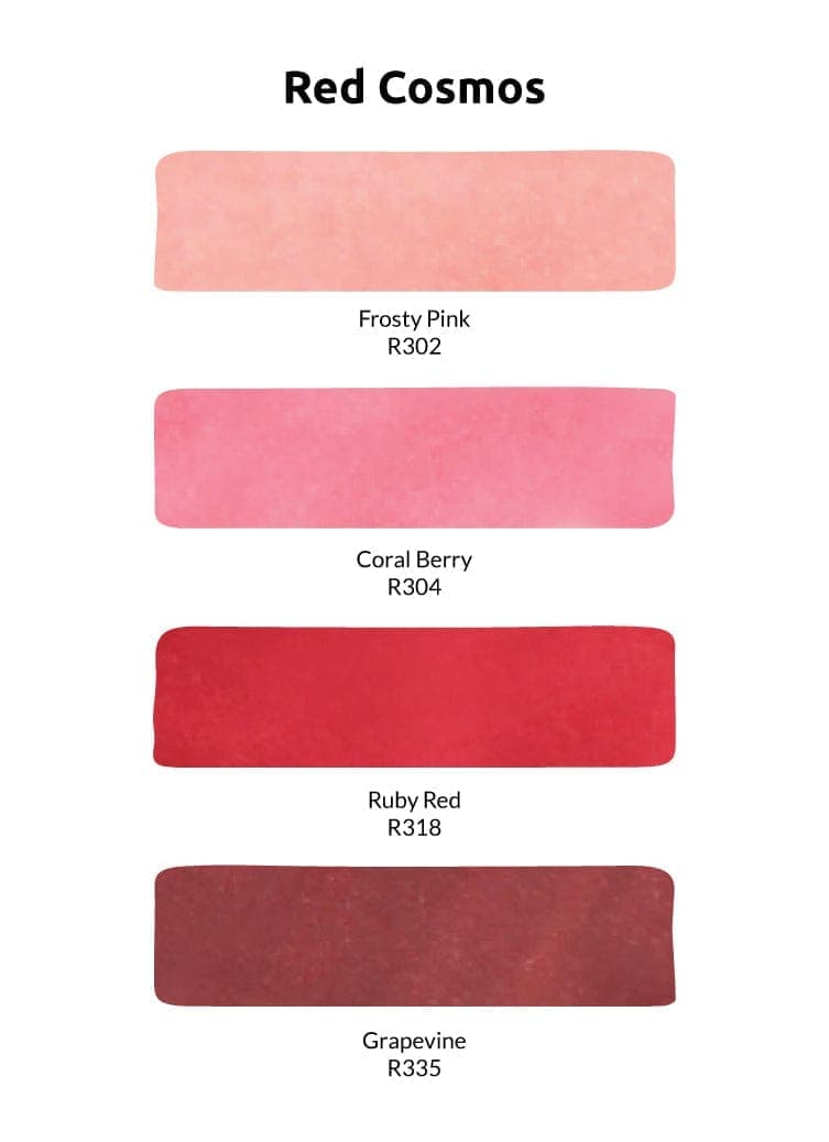 This bundle contains all four Alcohol Inks from the Red Cosmos color family, Frosty Pink, Coral Berry, Ruby Red, and Grapevine, at a specially discounted price.