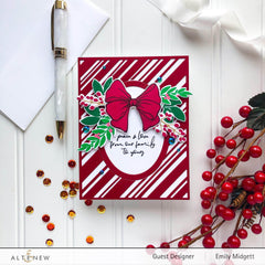 This fun die will cut a 4 1/4" x 5 1/2" panel with diagonal stripes that will cover the front of an A2 card base. Although this is a holiday die, it can be used all year long as diagonal stripes never go out of style!