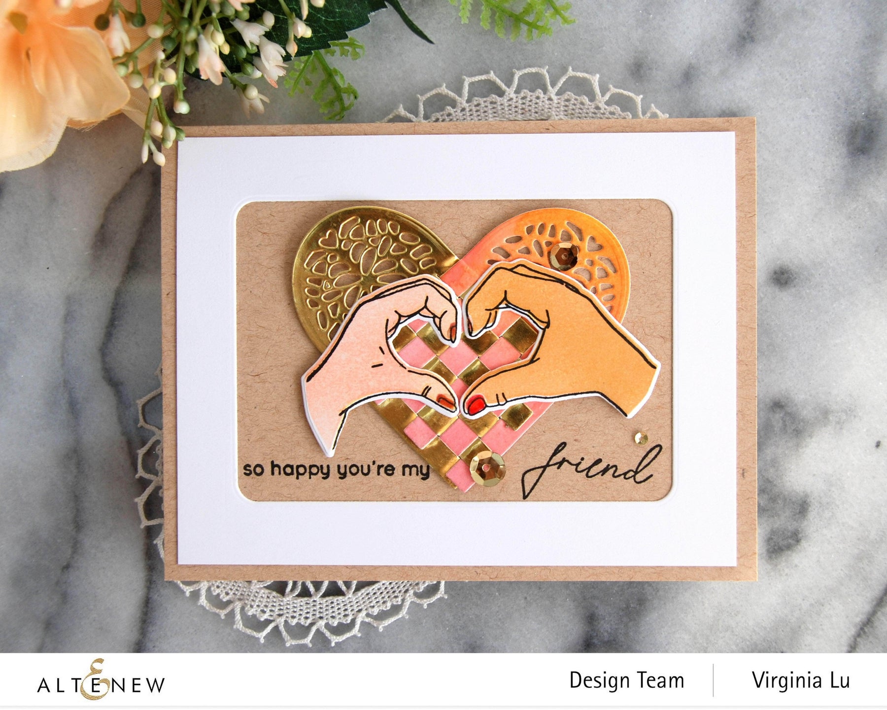 The set features two female hands and two male hands shaped to form a heart. Both sets of hands can be mixed and matched to create varieties of adorable hand hearts. Color them in with your favorite markers or paint, or use our convenient Simple Coloring Stencils to easily blend ink over the images. This set is finished off with lots of sweet sentiments just perfect for Valentine's Day, anniversaries, birthdays, and more!