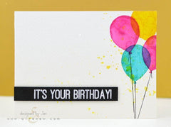 Altenew was thinking of me when they created this birthday stamp set because I wanted one with different options all together in one package. So much variation and several sized greetings to fit each card created.. script AND block styles! It even comes with a balloon watercolor stamp you can use to do a whole balloon bouquet, mixed media or simply alone. Cool as heck. So glad I got it before it sold out!