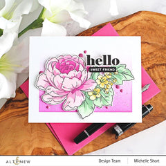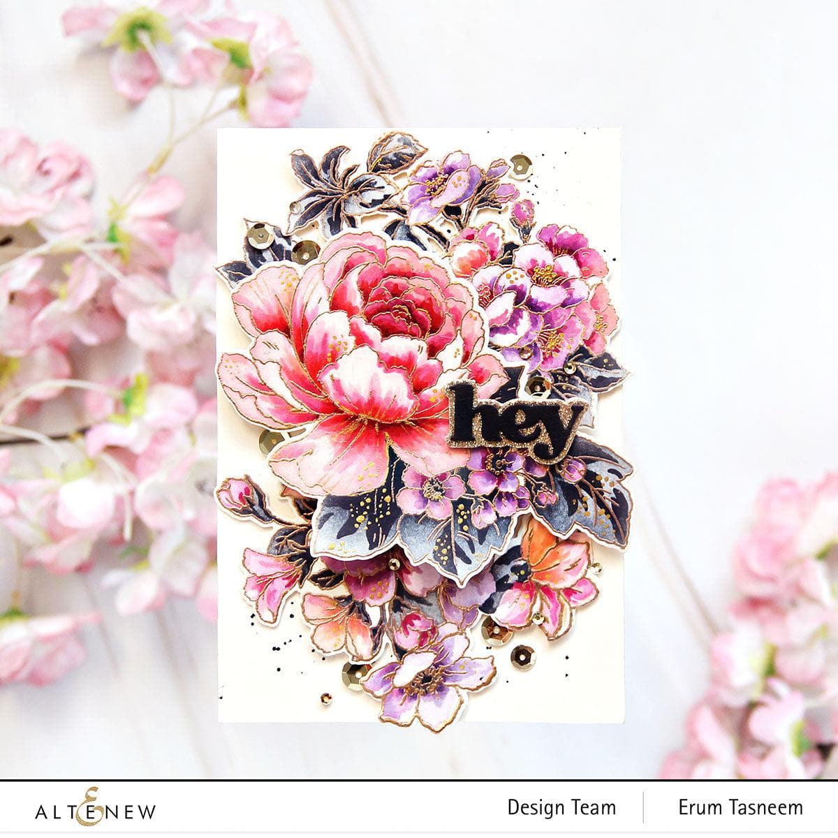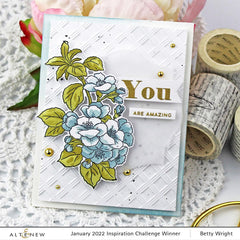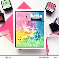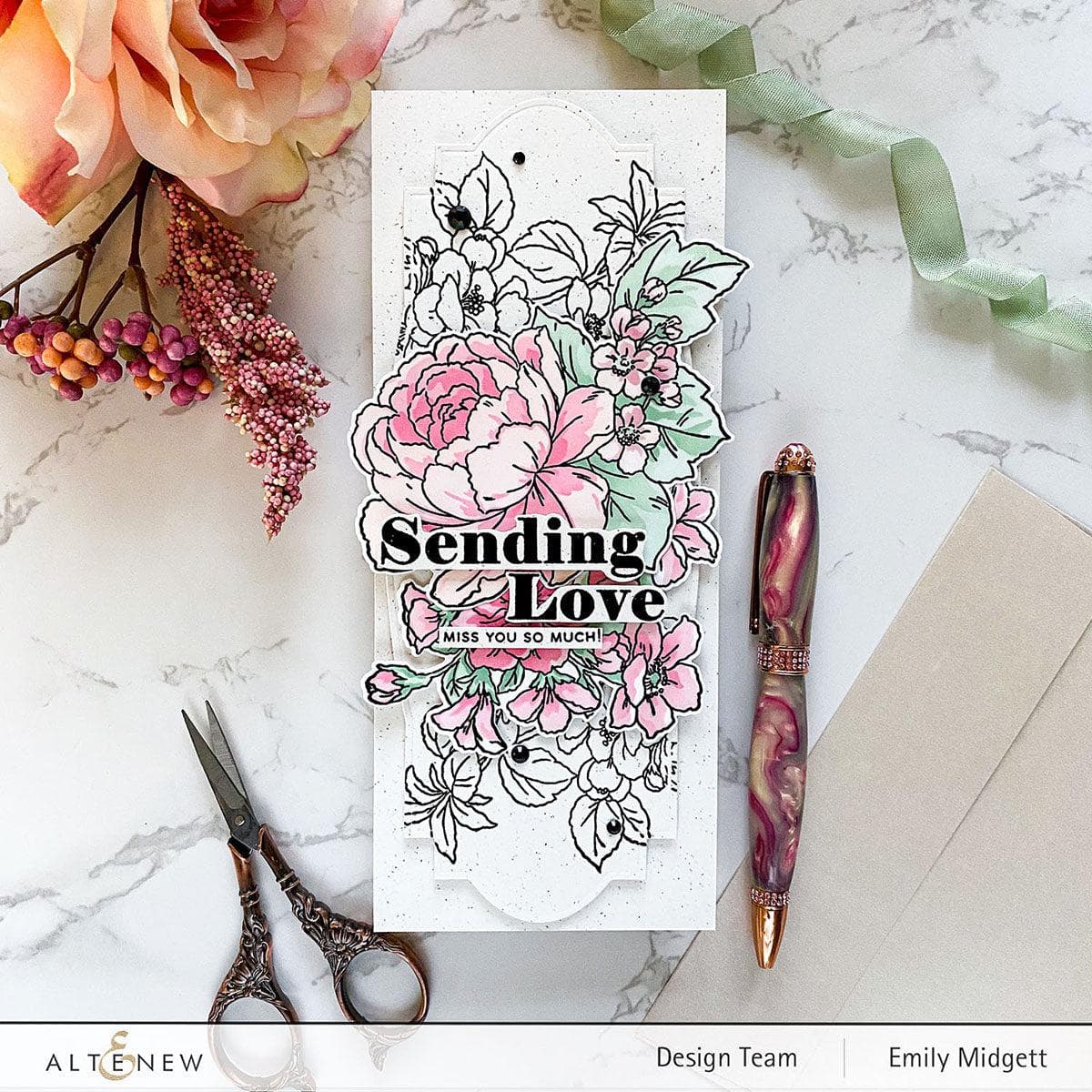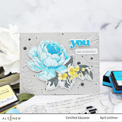 The coordinating simple coloring stencil set will allow you to effortlessly color in your stamped images and the embossed texture. Simply line up the stencils with your images and blend in color using your favorite Altenew inks and blending brushes.