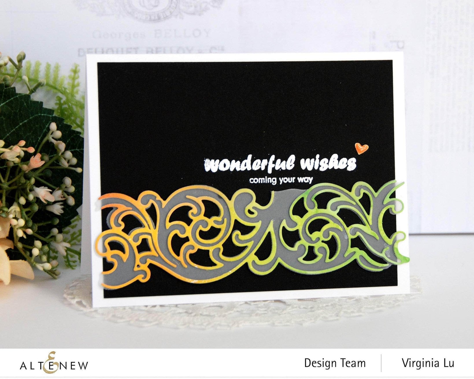 This die set makes stunning flourishes and cuts easily. There is a down side to this one though. The top layer is so delicate it is difficult to maneuver and it gets tangled if you are not very careful.
