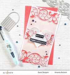 This die set features an elegant spiral motif and is comprised of two layers. The double-layer detail takes this piece of paper art to a whole new level of elegance and beauty. It will be great to use it as a border, a background, or even the focal point of your projects.