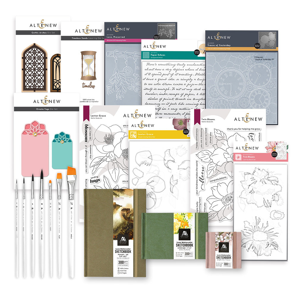 Embrace moody elegance and thoughtful creativity with Altenew’s February 2026 Release Bundle. Inspired by Dark Academia, this collection features delicate florals, layered embossing folders, architectural dies, and painterly tools for cards, journals, and keepsakes. Each set—from Lenten Grace and Twin Blooms to Love Preserved and Gothic Arches—invites you to craft with depth, reflection, and quiet beauty.