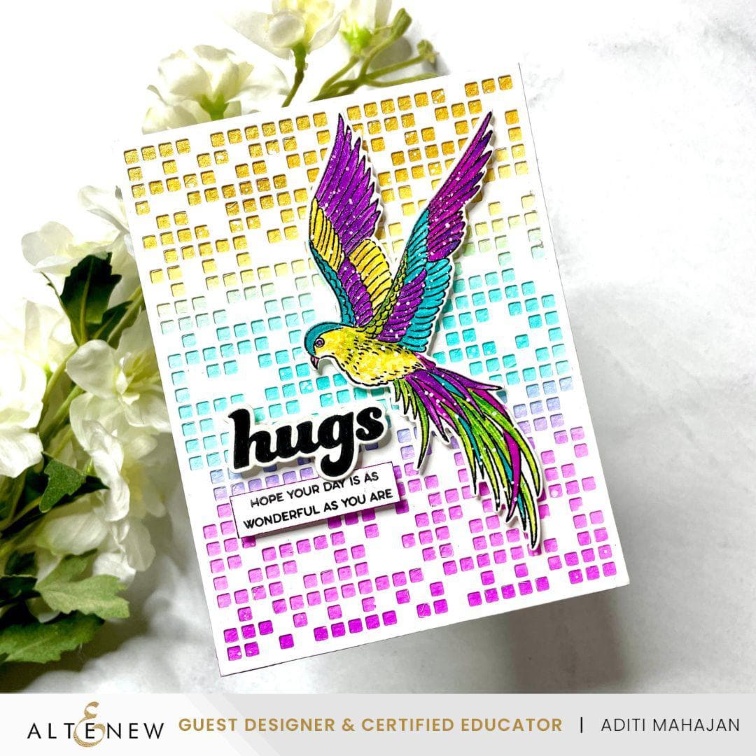 Oh, I have had this die on my Wishlist for the longest while! Thank you, Altenew, for including it in one of your Weekly Sales events--I ordered it right away! Thank you, too, for providing the wonderful selection of cards created by the Design Team. I've been inspired by them to use this die in a variety of ways: with colored and metallic cardstock, inking over and inking under the die cut panel, leaving the pixels in the die cut panel and punching them out in a variety of combinations. I feel more practiced with every use and have so enjoyed the learning curve!