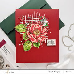 Enlighten your projects with beautiful fragrant wild roses. This charming Build-A-Flower: Wild Rose Stamp Set features a beautiful wild rose with cupped semi-double flowers. A stunning design that includes an outline layer and three coloring layers for the petals and the stamens, will create a refreshing background on any papercraft project. There is also has a branch bearing five leaves with an outline layer and three coloring layers. Eight uplifting sentiments and a couple of mini flower clusters finish off the set.