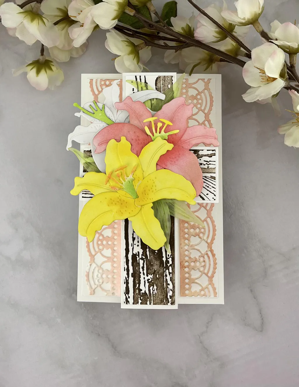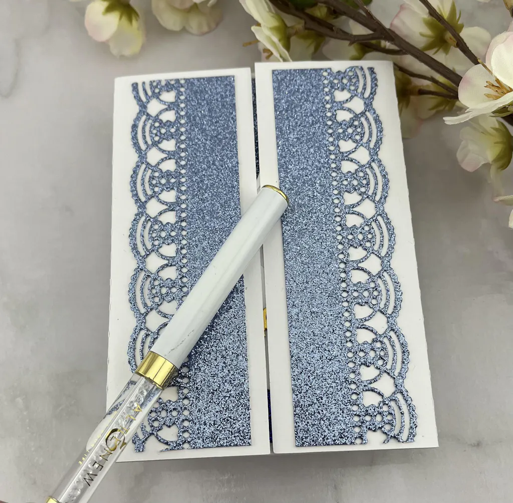 This die creates a lovely lace border! It only cuts one side, so you can use it to create a border on any size panel. The design is elegant and beautiful! I recommend using the Perfect Pick to poke out the small bits from the die cut.
