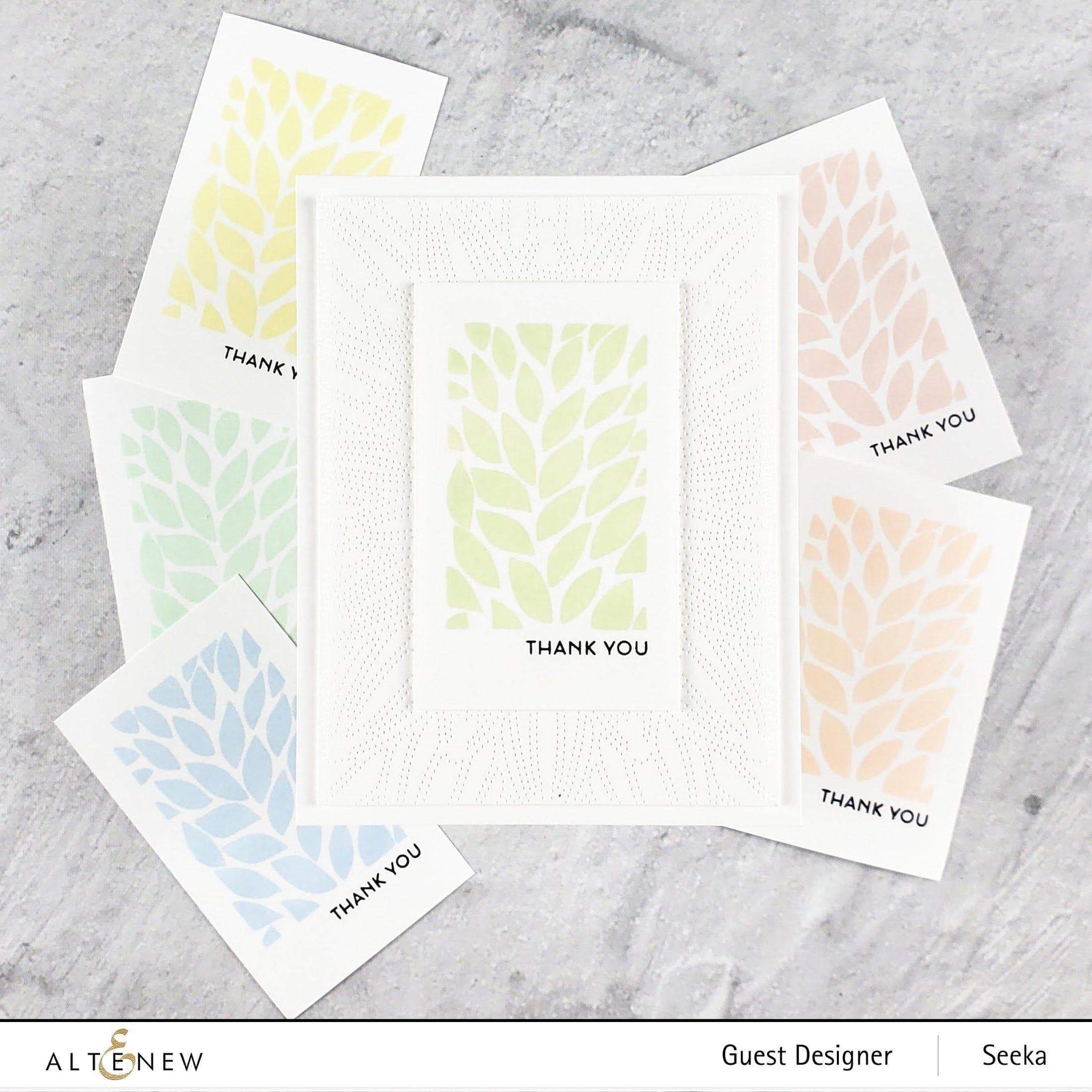 This set of six soft inks was on my wish list since it came to market (but then my Altenew Wishlist is sooooo long!) This set deserves six stars! I'm so glad I got it before it disappeared. At some point, I thought I would wait until a Fresh Dye version would come out, but then some of the inks (like Strawberry, Mint Choc and Pistachio) started to pop-up in new sets as the lightest of four colors and I am always on the look-out for soft colors -- especially soft orange and blue shades are difficult to find. Well I can tell you that I do not regret getting this set. I love every single color and especially the orange and blue. I am still hoping that at some point this set of six will re-appear as a Fresh Dye version. The dark twin (jewel tones) would also be a great set to have in the Fresh Dye version. And dear Altenew decision makers, I am obsessed with Peach Perfect, but have no reinker. Please, please, please offer a Fresh Dye version of the set of six that had Peach Perfect, Mango Smoothie etc.