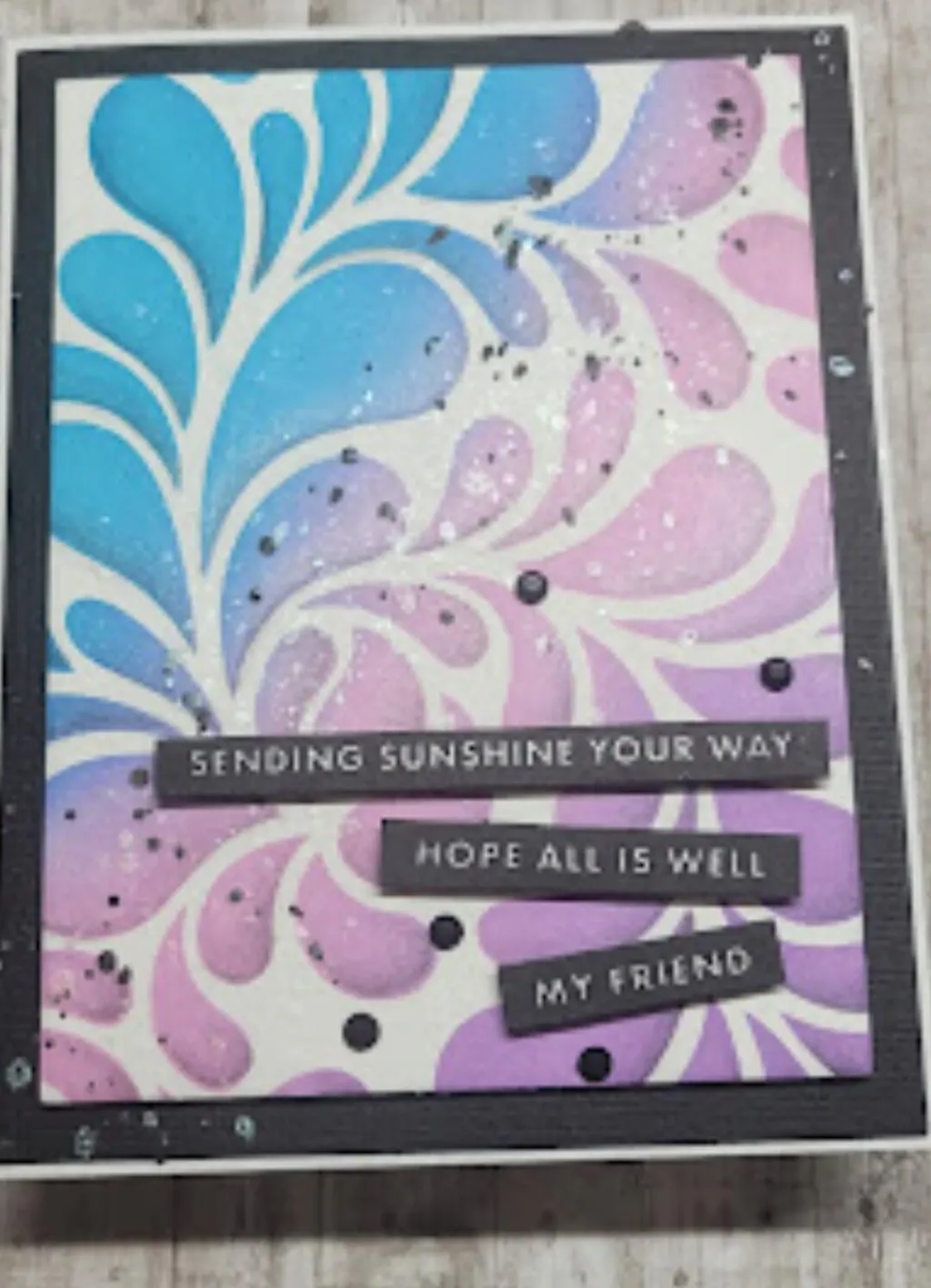 This is a fun and versatile stencil. Works as a background as well as a stand-alone. Just add a sentiment and you have a beautiful card.