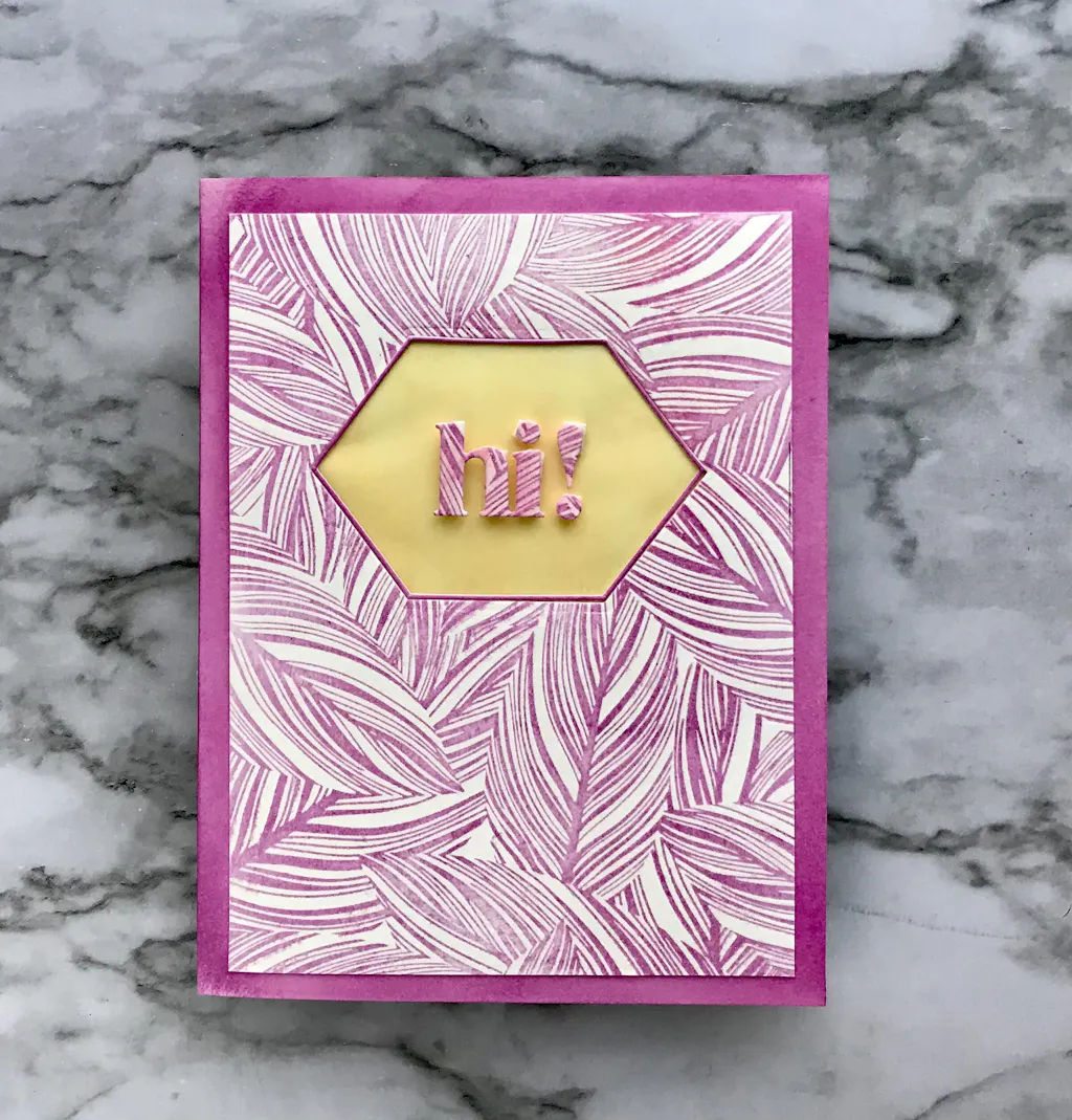 This press plate is gorgeous weather used as intended or with foil. Here I used it with pigment ink and clear embossing powder, given that the outlines and veins of the foliage are in close proximity with each other I could not get a “perfect” embossing, but it adds a good amount of texture and shine, which I love!