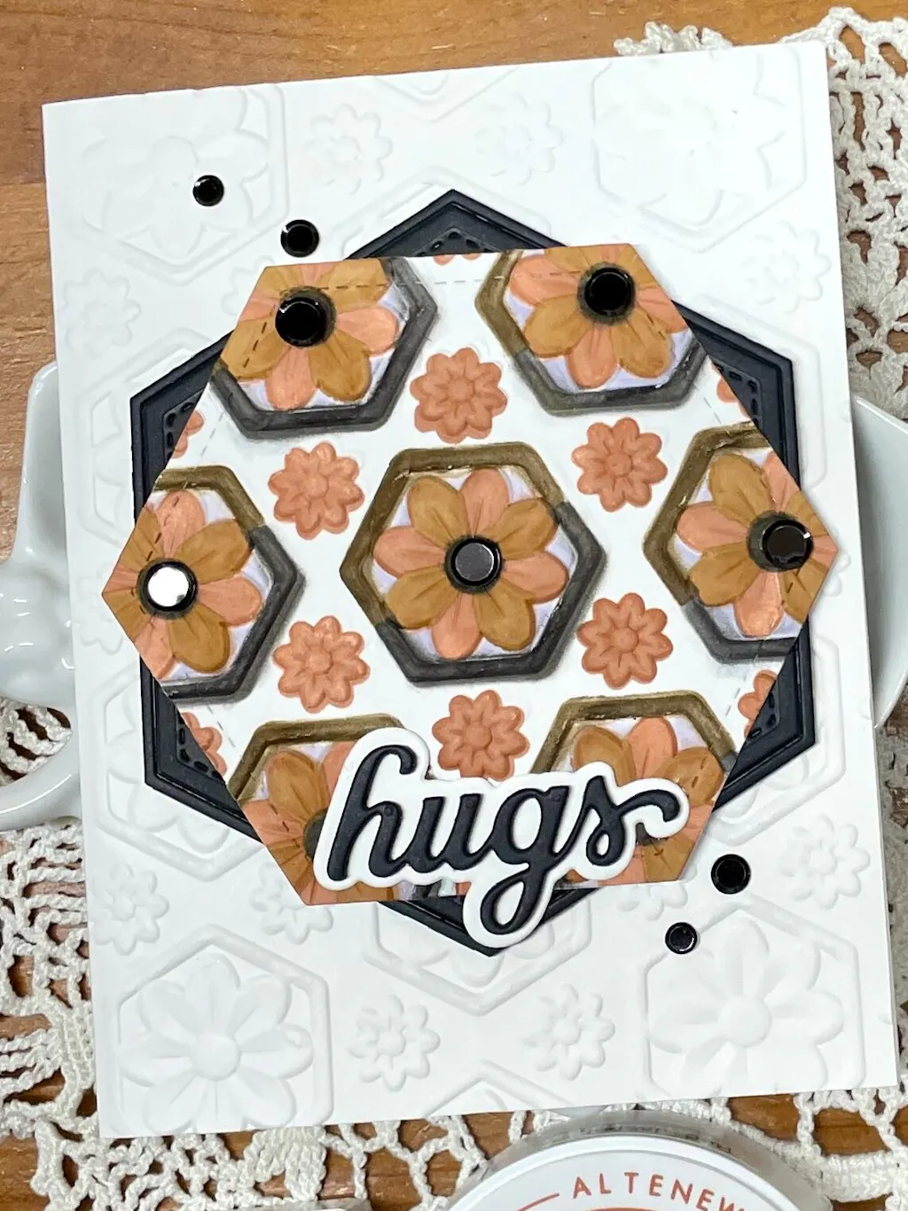 1. Emboss the front of your notebook with the Botanical Honeycomb 3D Embossing Folder.