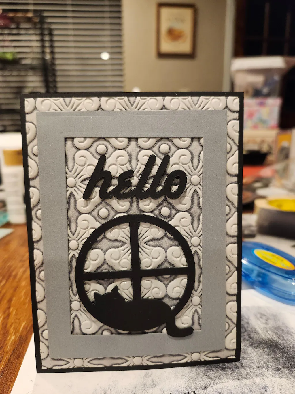 This 3D folder embosses a beautiful pattern! I love to go over the top with an ink color to make a beautiful card panel!