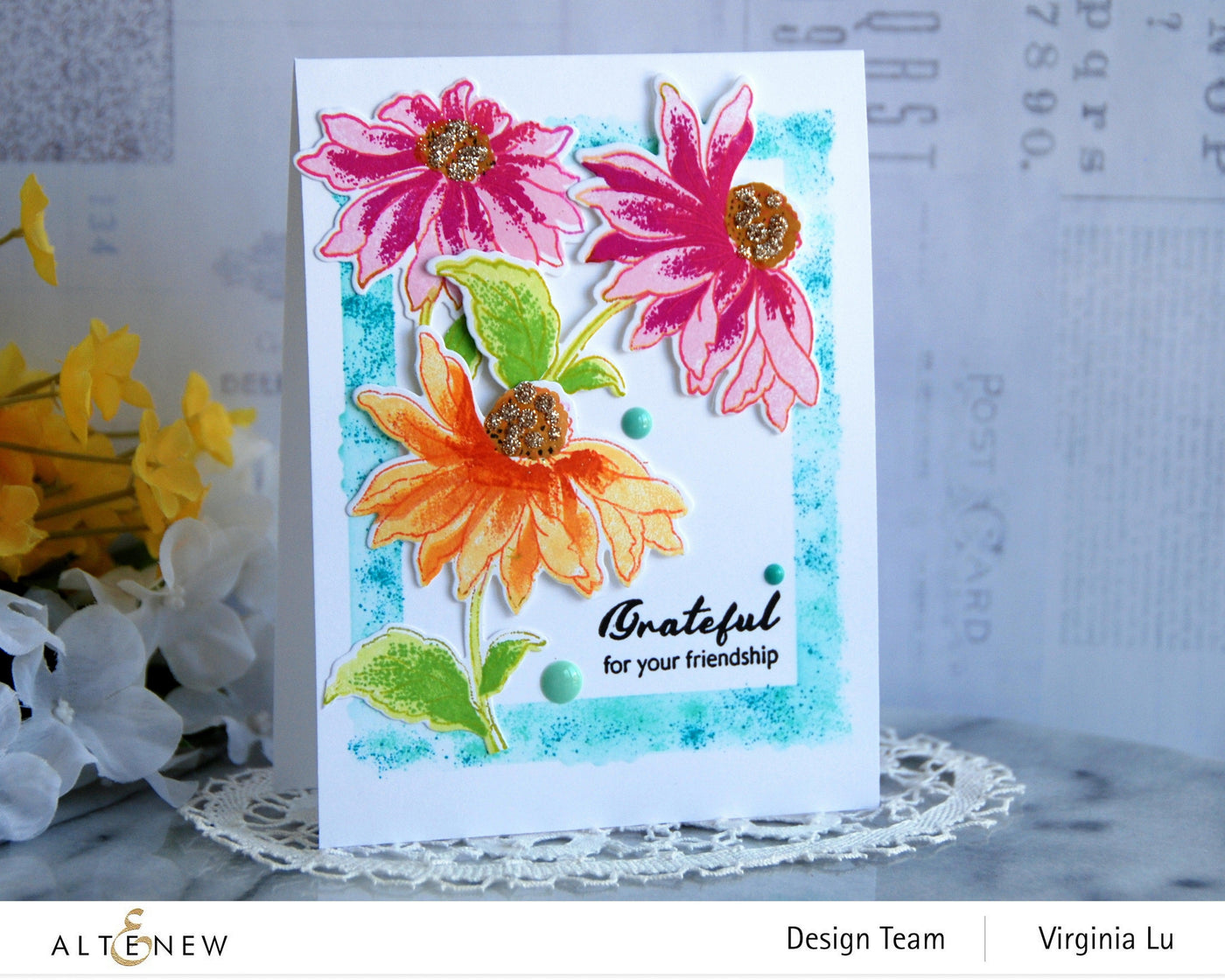 Use it to mask off and ink up different areas of your cardstock before embossing to make adding color a breeze! You can also this stencil and mask set without the folder for a more modern framed look.